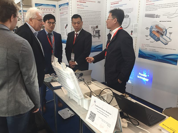 蕪湖圣美孚科技有限公司申報(bào)項(xiàng)目在順利通過國內(nèi)多重審查遴選后,成為中國中醫(yī)診療設(shè)備企業(yè)代表,作為中國代表團(tuán)成員參加了本次發(fā)明展。同時(shí)受邀參展的中國代表團(tuán)項(xiàng)目成員還有清華大學(xué)、北京交通大學(xué)、北京宇航系統(tǒng)工程研究所、中國航天科技集團(tuán)、國家電網(wǎng)公司等。11月2日展會(huì)開幕,中國駐德國大使館特派科技一秘李國強(qiáng)教授前來展會(huì)參觀中國代表團(tuán)并鼓勵(lì)。