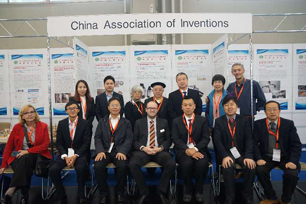 宣團(tuán)長(zhǎng)率中國發(fā)明協(xié)會(huì)部分代表與發(fā)明展主席HENNING(前排中)、歐洲發(fā)明協(xié)會(huì)副主席BRENKA(前排左1)、葡萄牙發(fā)明協(xié)會(huì)主席費(fèi)爾南多(后排右1)合影